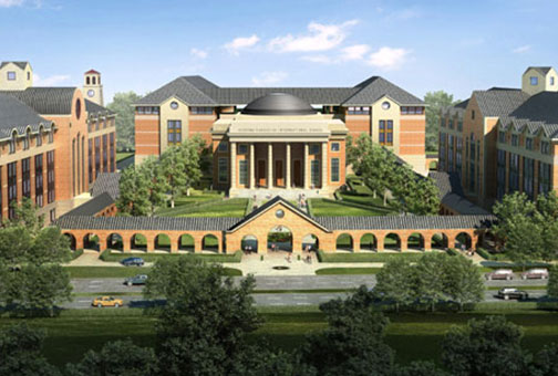 华东康桥国际学校位于苏州昆山市花桥经济开发区,紧邻上海市,学校总投资5亿多人民币,占地面积约215亩,包括幼儿园、小学、初中、高中,已于2014年9月正式开学,康桥校舍建筑采用欧式高校的经典校园规划——Quadrangle,四边形的中央绿地被周围的建筑所环绕。在校地北侧规划处18亩的生态绿地,让大自然与校园完美的结合,为国内校舍建筑风格树立了一个新的典范。