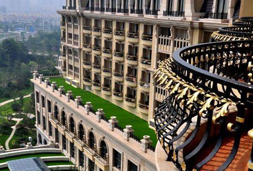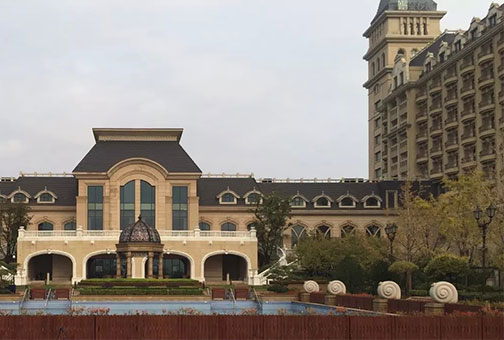希尔顿酒店的屋顶也是德式城堡式的设计,双坡屋顶很陡,内有阁楼,屋面开窗。 屋面坡度达到70°,已经类似于幕墙,大大增加了安装难度。同时伴有海边特有的暴雨、台风、曝晒的极端气候环境,大大增加安装难度。