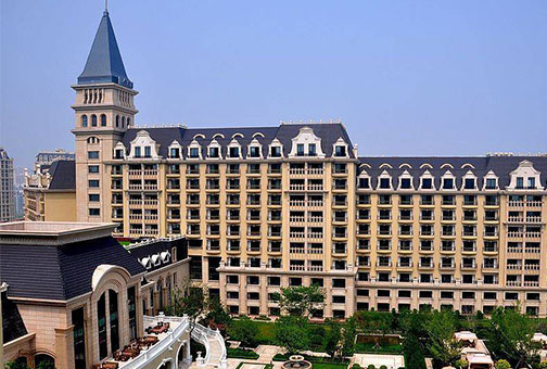 金沙滩希尔顿酒店项目是由青岛城市建设集团投资建设,总投资10亿元,占地360亩,建筑面积7.7万平方米,楼高11层,以青岛的欧式历史元素为基调,与青岛老城区的欧式建筑隔海相望,遥相辉映。建筑两栋主体建筑为德式城堡,花园景观环绕,构成一组庄严而恢弘大气的欧式建筑群。
